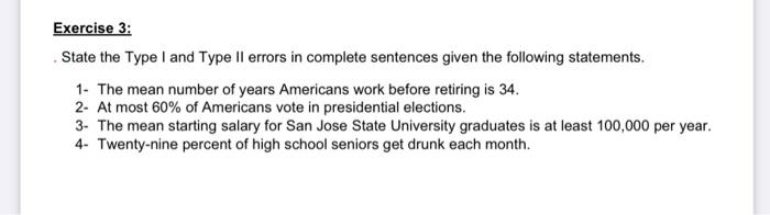 Solved Exercise 3 State The Type I And Type Ii Errors In Chegg Com